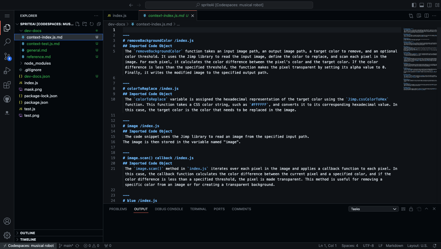 In just a few minutes you'll see a new Markdown file generated in the Dev-Docs folder in your repo. You can view the raw Markdown there or right click on the file you generated docs for and navigate to Open Devdocs Markdown to view it in a rich text editor right next to the file itself.