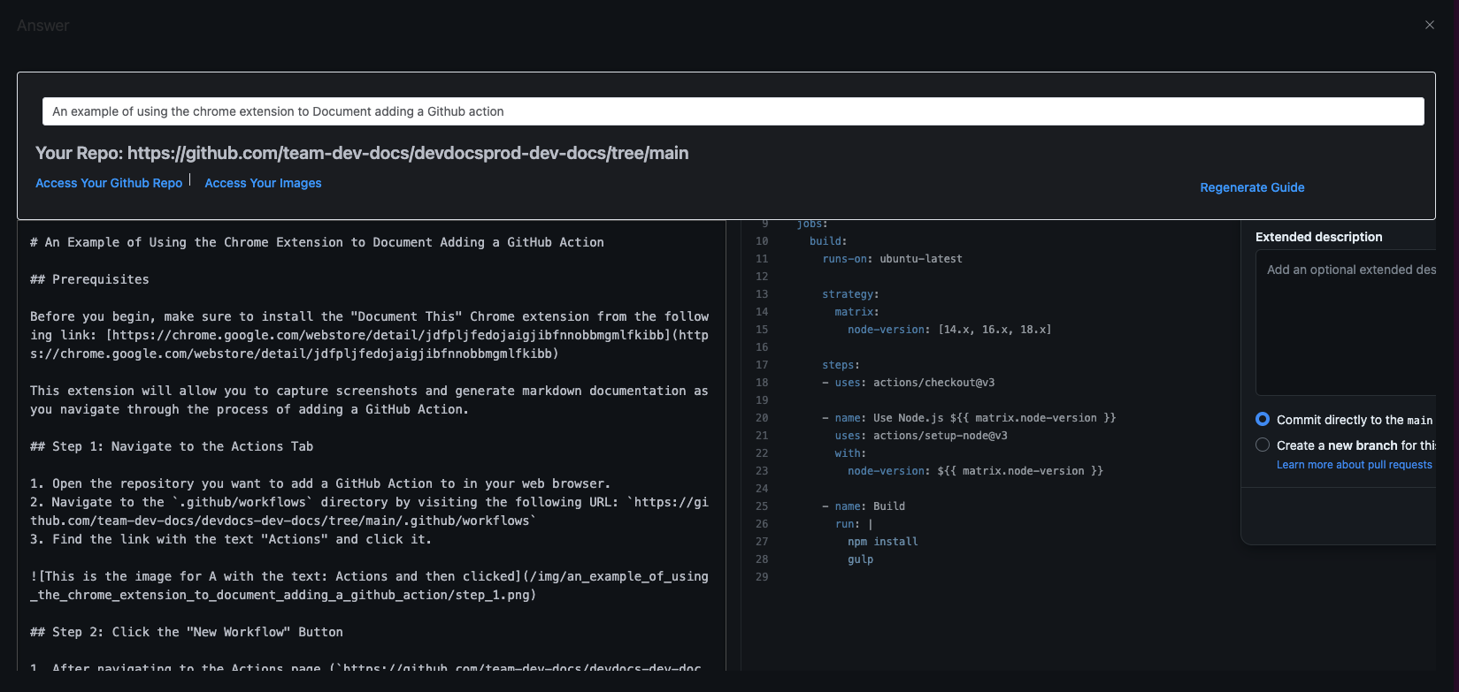 Optionally if you want so set up the chrome extension to push to your custom repo you can set it up [here](/docs/Integrate Dev-Docs with a Custom Docs Repo.md). However we recommend you start simple first just to get going.